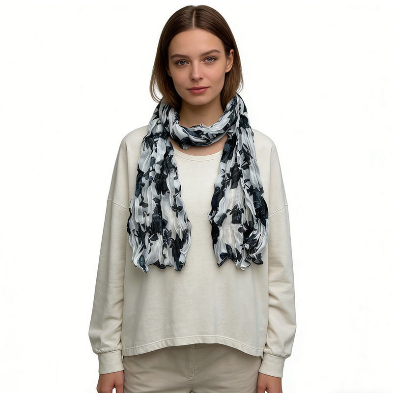 Black White Crinkle Graphic Textured Scarf,High contrast abstrac Crinkle texture adds depth Scarf ,vacation,daily life,evening party,Office appropriate subtlety for women men